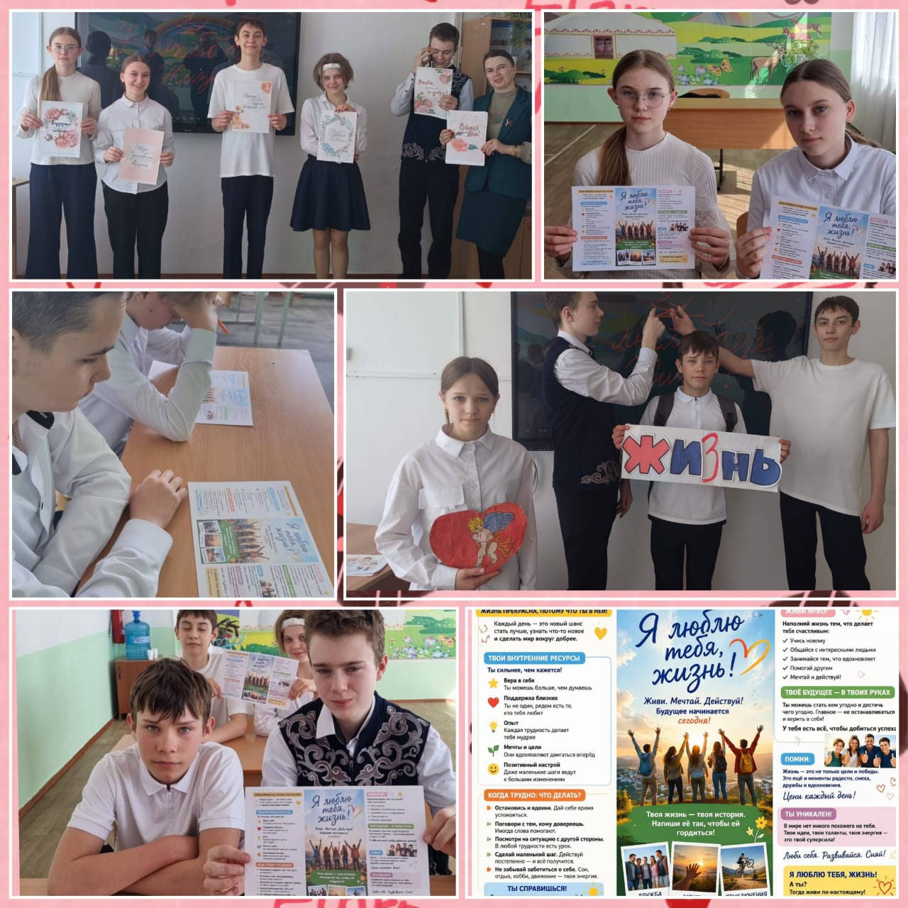 Осы мақсатта 8–9 сынып оқушыларымен педагог-психолог «Мен сені сүйемін, өмір» тақырыбында тренинг өткізді.